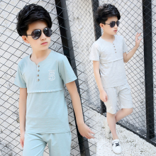 男童夏季套装2017中大童短袖棉麻两件套韩版儿童休闲时尚运动套潮