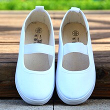 一字浅口小白鞋中带白色帆布鞋女鞋儿童鞋六一表演鞋舞蹈鞋白球鞋