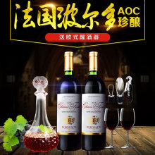 法国波尔多AOC 原瓶进口红酒 干红葡萄酒双支 送酒具