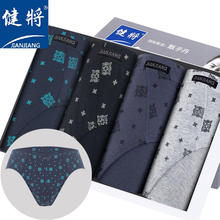 健将男士内裤 平角裤 莫代尔透气青年中腰柔软男四角裤 4条装包邮