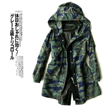户外好穿 帅气迷彩军绿防水外套抽绳收腰连帽中长款夹克P6