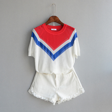 TUTU 2017春韩版拼色条纹宽松显瘦中袖冰丝套头圆领上衣针织衫女