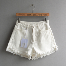 CQ 2017新款韩版修身百搭高腰时尚毛边破洞白色牛仔短裤热裤女902