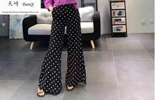 吉娜205正品2017夏女裤子 韩版新款松紧腰圆点显瘦九分裤喇叭裤潮