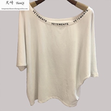 字母一字领蝙蝠袖棉质短袖T恤衫百搭显瘦宽松潮女OL泓利专柜正品