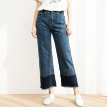 高腰直筒九分牛仔阔腿裤女韩国学生2017新款春夏毛边宽松韩版裤子