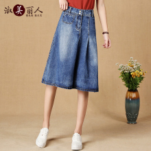 2017新款牛仔半身裙女大码夏季显瘦中长款a字长裙韩版高腰裙子潮