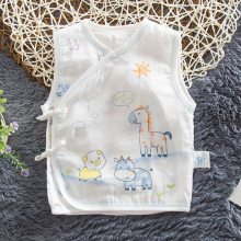 新生儿纱布衣服夏季初生婴儿无袖上衣0-3-6个月纯棉宝宝内衣上衣