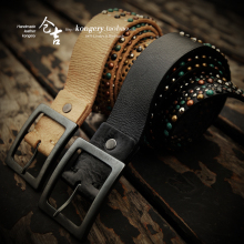 仓吉手工头层牛皮带休闲时尚百搭复古潮流铆钉朋克风腰带男女皮带