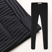 竖条纹裤子女小脚九分裤中腰2016新款秋季韩版9分铅笔裤黑色大码