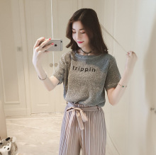 新款2017韩版个性字母刺绣亮丝T恤女短袖圆领宽松打底衫韩国上衣