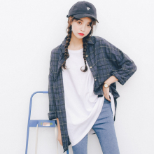 韩国ulzzang学院风中长款宽松格子衬衫女学生韩范长袖衬衣外套秋