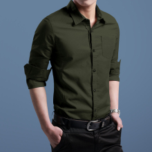 2016春季男士衬衫男长袖牛津纺休闲纯色纯棉薄款衬衣韩版修身男装