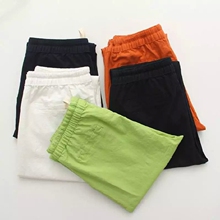 新款胖mm加肥加大码女裤棉麻松紧腰哈伦裤特大亚麻直筒裤长裤女士