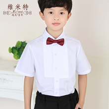 男童短袖白衬衫儿童节目表演出服装男孩钢琴礼服衬衣纯白色大童装