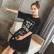 女装夏装2017新款潮套装女夏季时髦套装短袖T恤+蕾丝连衣裙两件套