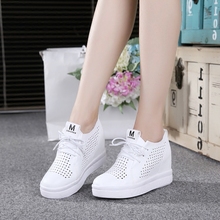 春夏新款镂空透气白色运动鞋12cm内增高超高跟厚底松糕系带休闲鞋