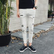 8分裤男夏季破洞九分裤男士休闲裤9分修身时尚韩版小裤脚八分裤潮