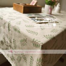 绿叶清爽田园桌布成品带花边唯美麻布桌布尺寸可定做