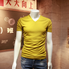 2017夏季男士短袖体恤韩版修身百搭V领糖果色短袖简单T恤潮