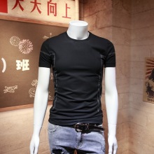 男装2017新款韩版修身打底衫青年简约百搭春季印胶圆领短袖t恤潮