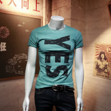 摩纳哥闲人馆 2017男士短袖T恤夏季修身圆领青年YES复古印花短袖