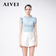 AIVEI 欣贺艾薇女春夏新设计师款甜美复古荷叶边针织上衣J0360047