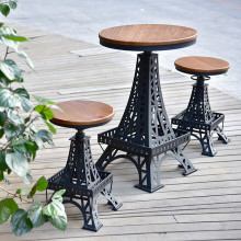 欧式复古做旧酒吧咖啡厅吧台桌椅组合铁艺埃菲尔铁塔升降餐桌椅