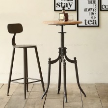 法式美式做旧铁艺咖啡桌椅 可升降茶几 做旧圆桌 复古实木茶几