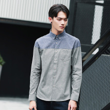 秋天青年男士休闲拼色长袖衬衫男韩版修身型青少年衬衣男潮流薄款