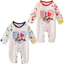 婴儿连体衣纯棉 我爱爸妈爱心宝宝哈衣 0-1岁衣服春秋长袖爬服