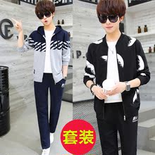 春夏新款初中高中学生开衫连帽运动服套装青少年两件套卫衣男一套