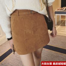 大码短裙秋冬200斤胖mm鹿皮绒口袋a型裙高腰显瘦半身裙A字裙短裙