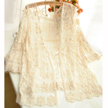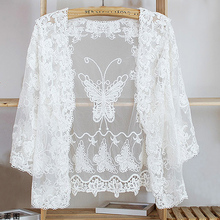 韩版中长款外搭薄网纱钩花边蕾丝开衫夏季中袖披肩防晒衣女款外套