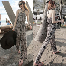 海边沙滩吊带连体裤长裤裙度假蜜月连衣裤雪纺阔腿裤显瘦连身裤女