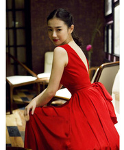 蜜月沙滩裙子修身显瘦雪纺连衣裙女波西米亚性感V领露背大摆长裙