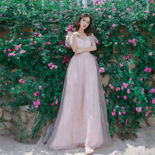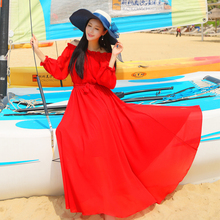 蜜月一字领露肩长袖波西米亚长裙海边沙滩裙度假大摆雪纺连衣裙女