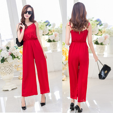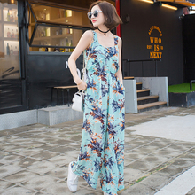 韩国宽松显瘦高腰连体裤波西米亚长裤雪纺吊带连衣阔腿裤裙女夏季