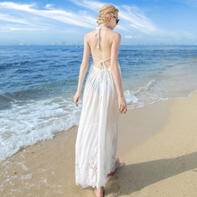 海岛度假女神白色波西米亚大码显瘦长裙性感露背沙滩裙挂脖连衣裙