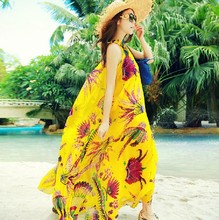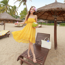 韩版波西米亚大码显瘦沙滩裙雪纺碎花连衣裙夏蜜月度假海边长裙子