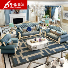 布佳伲 美式真皮沙发组合 欧式布艺大小户型客厅家具全实木沙发