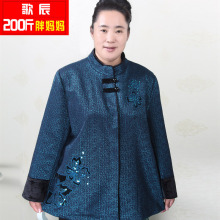 歌辰200斤胖妈妈加肥加大中老年女装毛呢外套女秋装上衣 唐装加厚
