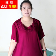 歌辰特大码中老年胖妈妈女装 200斤夏装 加肥加大t恤nv女短袖T恤