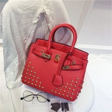 2017春夏欧美新品 铆钉大荔枝纹铂金包恶搞女包单肩手提包