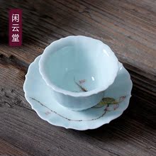 景德镇原创影青瓷小茶杯品茗杯主人杯 手绘青釉陶瓷个人功夫