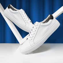 爵煌韩版小白鞋男款真皮男士休闲皮鞋白色系带潮流时尚板鞋子春季