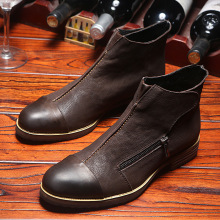 爵煌英伦男靴男士休闲短靴复古马丁靴真皮拉链皮靴子潮切尔西靴男