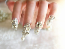 新品包邮3D新娘美甲假指甲成品假指甲可爱贴片 背胶婚纱影楼写真