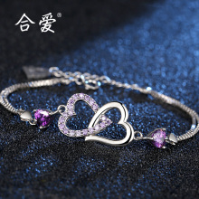 合爱 925银手链女心形日韩版时尚简约百搭手链首饰生日礼物送女友