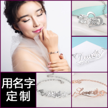 定制名字diy个性银手链女情侣925生日首饰品字母情人节礼物送女友